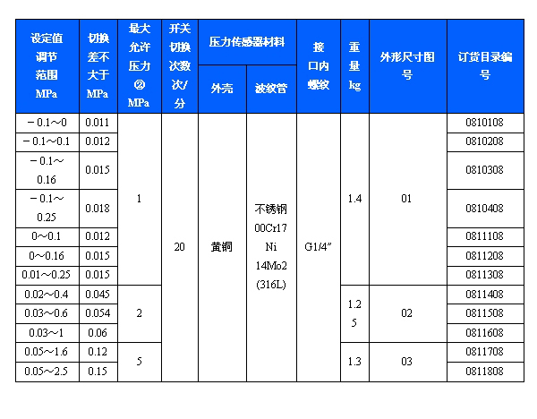502/7DZ雙觸點壓力開關采用波紋管式的傳感器,可用于中性氣體、液體介質。控制器的設定值可調,調節范圍0.1~2.5MPa。